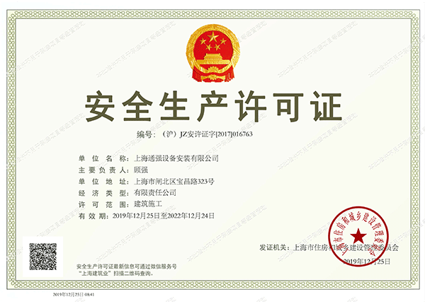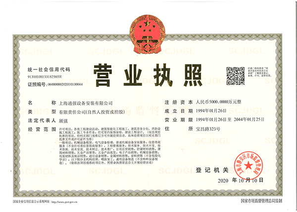 上海通強設(shè)備安裝有限公司注冊資金2000萬元,資產(chǎn)總量為100000萬元的專業(yè)設(shè)備安裝公司,公司專業(yè)從事工業(yè)與民用建筑的設(shè)備安裝、非標設(shè)備的制作、鋼結(jié)構(gòu)制作安裝、中央空調(diào)系統(tǒng)的安裝,水電及管道的安裝。經(jīng)過20多年艱苦創(chuàng)業(yè)現(xiàn)已成為一個具有國家二級安裝資質(zhì),獲得上海市“重合同,守信用”的施工單位。